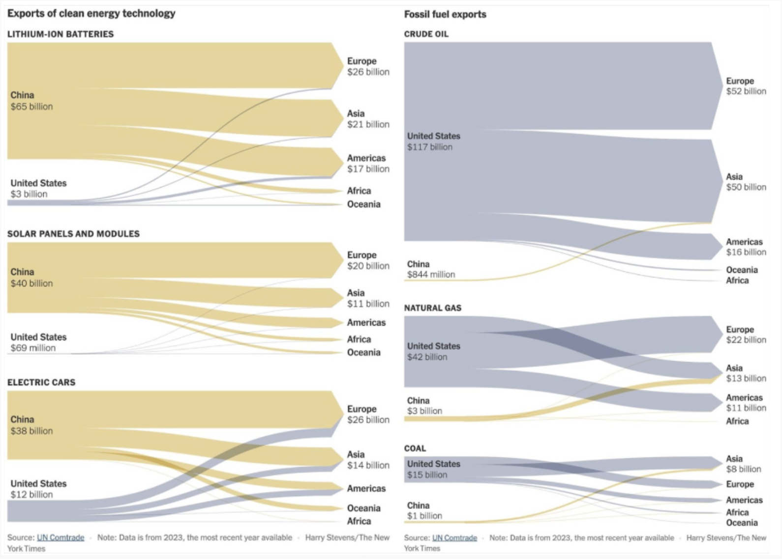 There are no serious analysts who think combustion fuels will supply anywhere close to a majority of energy by the end of the century. It is deeply embarrassing to see the Trump administration and Republican controlled legislature fighting at every turn to trap the US in a fossil powered economy. The rest of the world (China in particular) is investing heavily in the future, both in infrastructure deployment and in the capacity for technological advancement. Just look at these charts from the NYTimes and RMI: