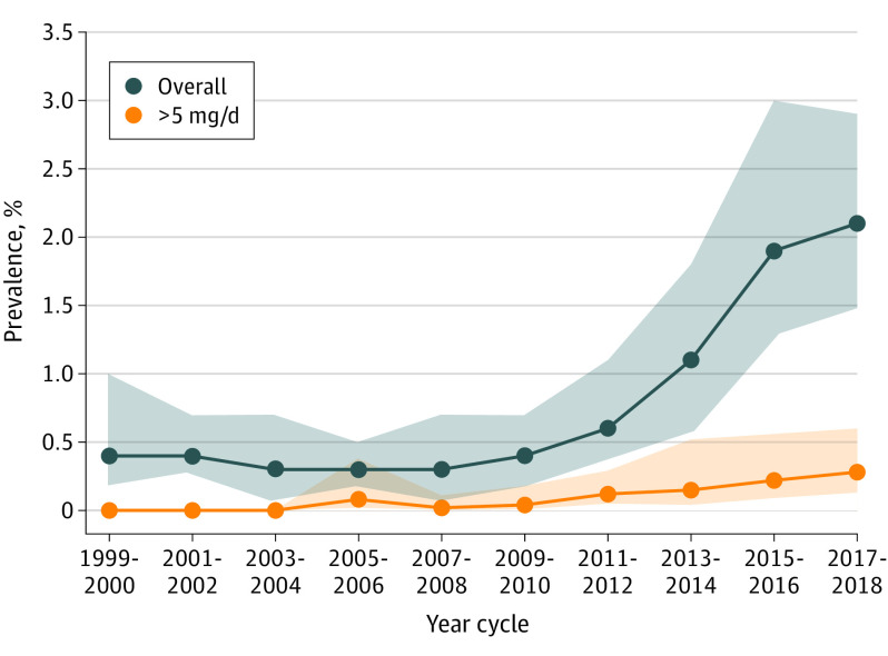 With how important sleep is to our wellbeing, you can imagine how difficult day-to-day life becomes when you are struggling to sleep. Nearly one third of U.S. adults don’t get enough sleep. There are many methods to aid in good sleep, but probably the most popular, at least in recent years, is to take melatonin. In a 2022 study, researchers reported trends from 1999-2018 of participants using melatonin overall and those using more than 5mg per day (Figure 1), showing that use has more than quintupled. So what exactly is melatonin?